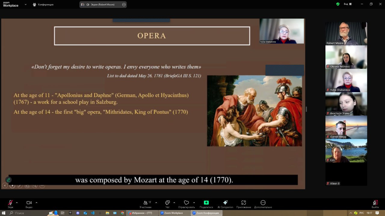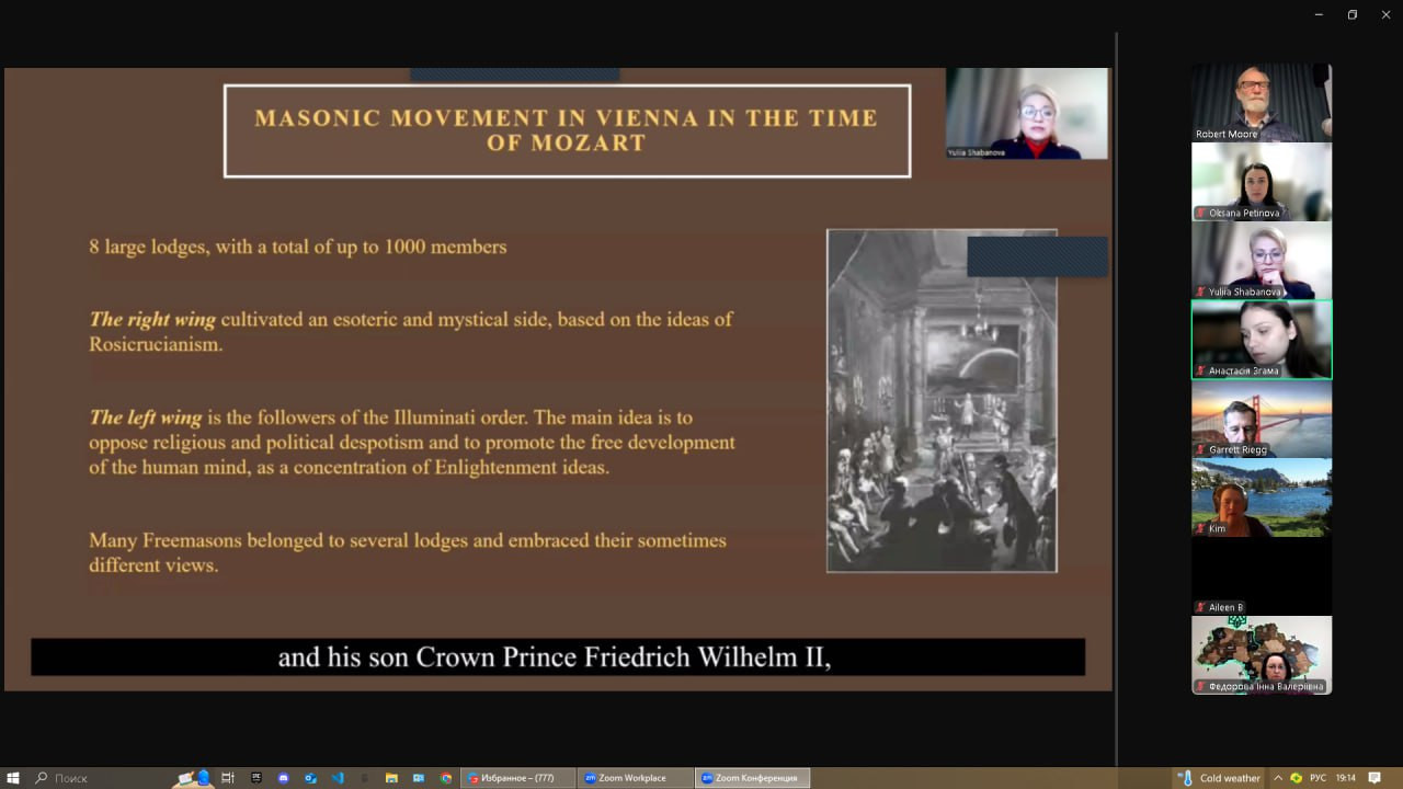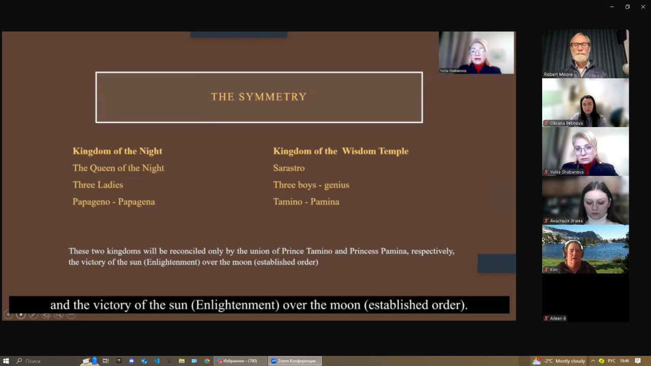 18 лютого відбулася онлайн-зустріч, організована Інститутом світової культури (Санта-Барбара, США), яка об’єднала небайдужих слухачів з різних країн. Центральною подією заходу стала лекція докторки філософських наук, професорки Юлії Шабанової на тему: ««Чарівна флейта» В. А. Моцарта як символічний світ масонського світогляду». Спікерка розкрила багаторівневу структуру опери, пояснюючи, як музика та сюжетна лінія втілюють основні масонські ідеї. Учасники дізналися про подвійний зміст «Чарівної флейти» – зовнішній, казковий сюжет та внутрішню, символічну складову, пов’язану з масонськими ритуалами посвячення та випробування. Особливо цікавими виявилися роздуми про шлях духовної трансформації та самопізнання, що є центральною темою опери. Професорка підкреслила, що боротьба добра і зла в «Чарівній флейті» символізує вибір людини між світлом і темрявою, між духовним розвитком і задоволенням матеріальних потреб. Окремо було розглянуто символіку флейти як інструмента, що несе абсолютні смисли та є засобом перетворення. Під час лекції також були висвітлені ідеї піфагорійської символіки – дуади та тріади, що глибоко вплетені в музичну і драматичну структуру опери. Після лекції відбулася сесія питань та відповідей, де слухачі мали змогу обговорити почуте. До зустрічі доєдналися Гарант ОНП «Філософія» проф. Оксана Петінова разом з аспірантами. Приємно, що активну участь в обговоренні взяли наші аспіранти, Інна Федорова та Лариса Васильєва. Захід став не лише нагодою поглибити знання, але й сприяв міжнародному культурному обміну та взаєморозумінню.