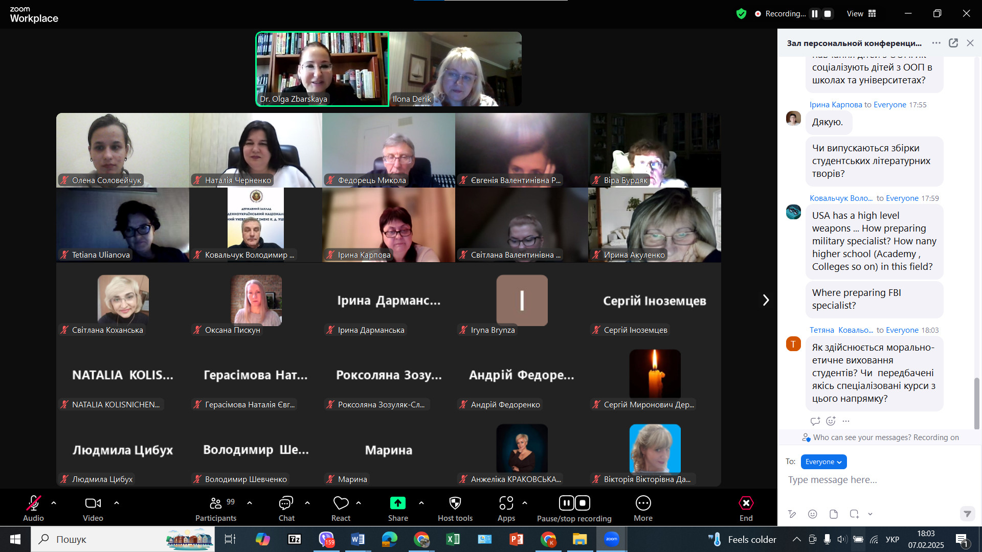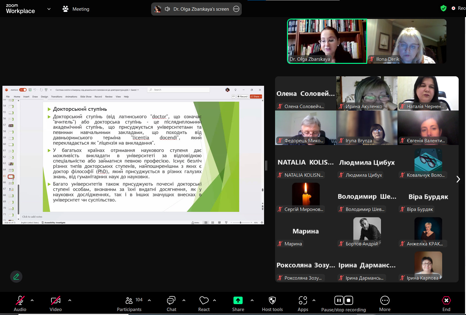 Директор Південноукраїнського центру професійного розвитку керівників та фахівців соціономічної сфери, Наталія ЧЕРНЕНКО, доктор педагогічних наук, професор, професор кафедри освітнього менеджменту та публічного управління ознайомила з організаційними моментами та можливістю цілодобової технічної підтримки, наголосила, що учасники міжнародного стажування отримають сертифікати, які будуть розміщені у державному реєстрі США «Аспаєр» .