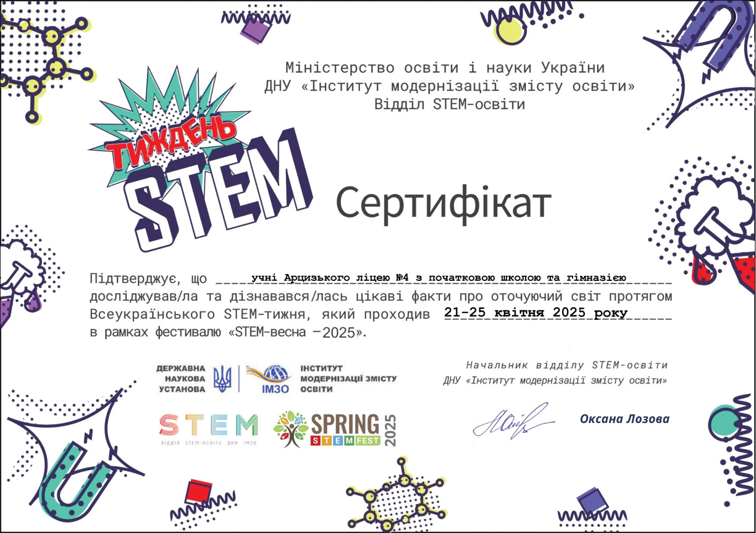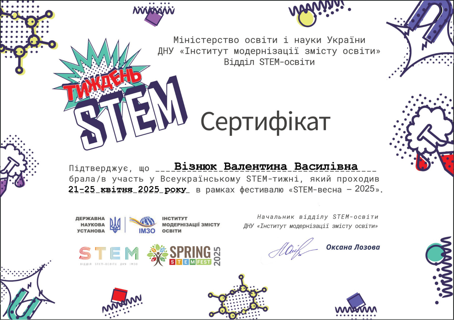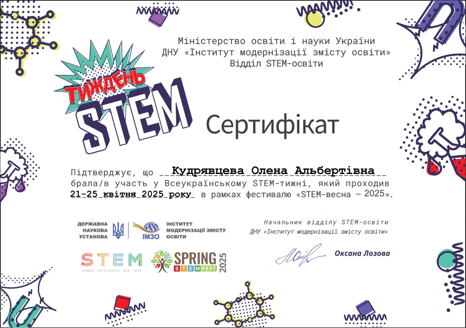 Колектив Південноукраїнського центру професійного розвитку керівників та фахівців соціономічної сфери Університету Ушинського отримав диплом за активну участь у Всеукраїнському STEM-дні «На крилах STEM!», що відбувся з нагоди 10-річчя розвитку STEM-освіти в Україні у межах Всеукраїнського фестивалю «STEM-весна - 2025», організованого Відділом STEM-освіти Державної наукової установи «Інститут модернізації змісту освіти»