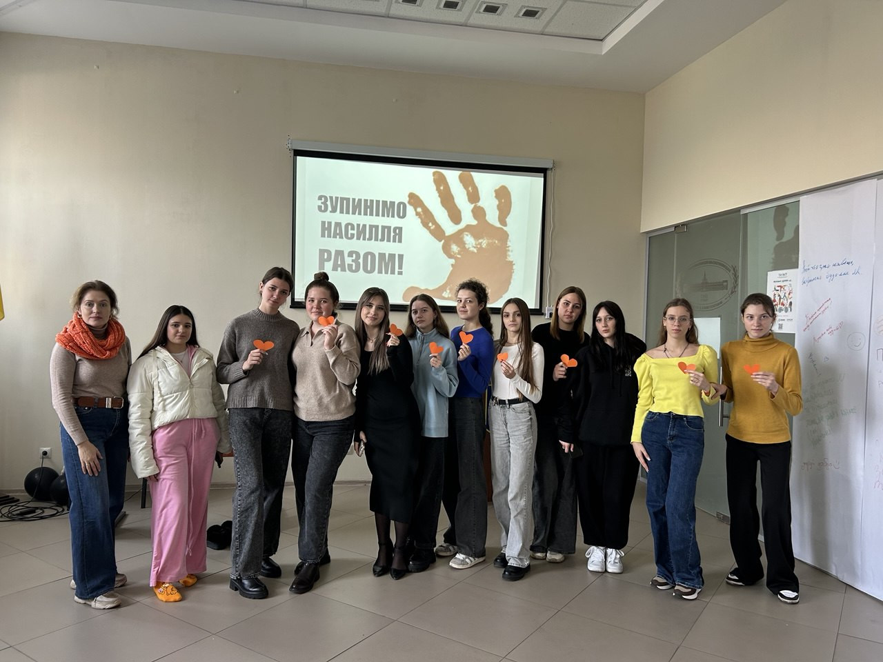 27 листопада практичний психолог Сазонова Ірина провела інформаційно-просвітницьку зустріч для студентів Університету Ушинського щодо проведення акції. Під час зустрічі висвітлювались масштаби проблеми, але й доводилось до учасників , що насильство не повинно залишатися нормою.