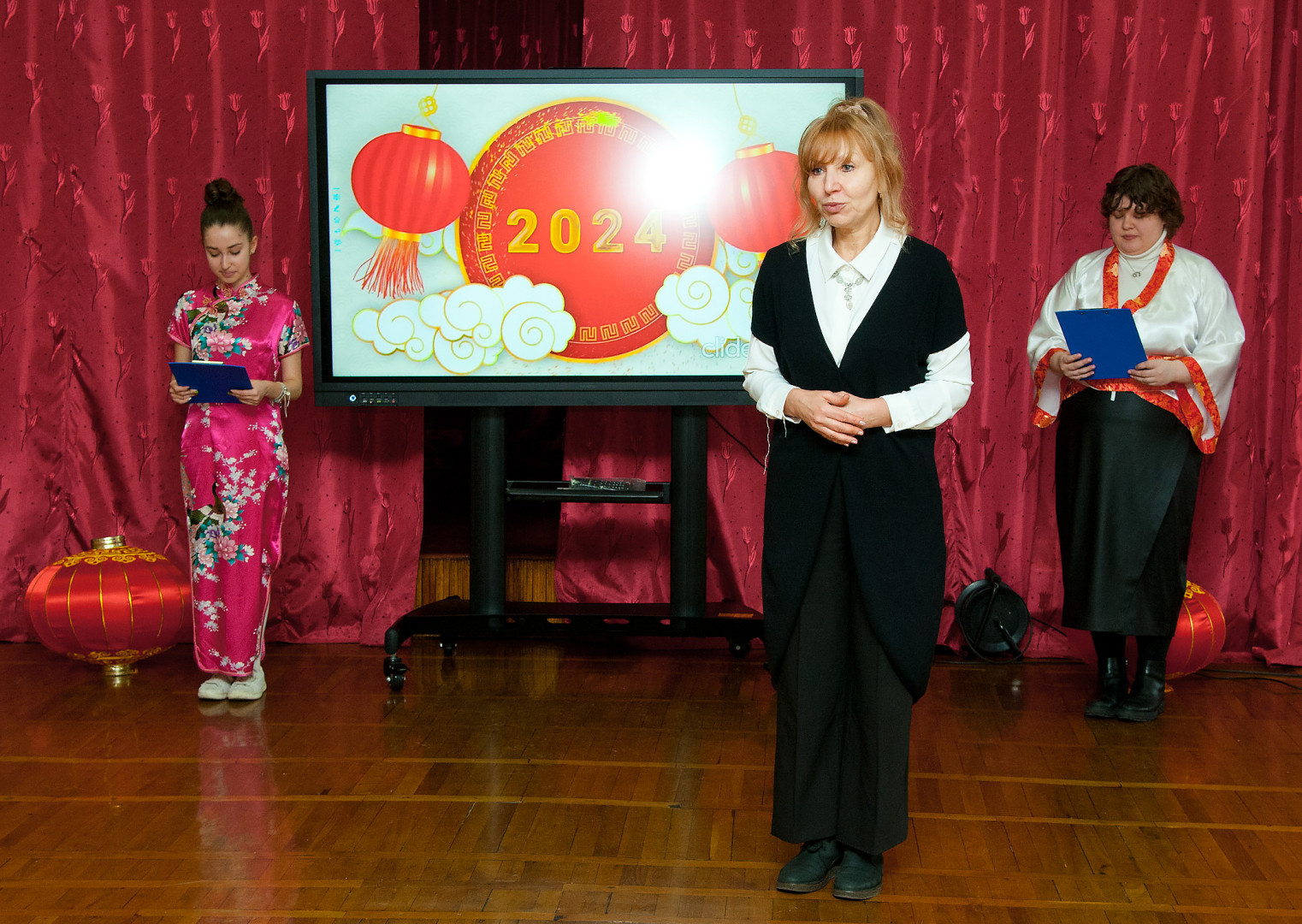 У цьому році слухачі китайської мови Класу Конфуція підготували яскраві виступи та занурились у подорож до світу культури і традицій Китаю. Учні 5-Г класу продемонстрували пісню «Гонг Сі», учні 8-А класу розказали та презентували, якими легендами поросло це свято Нового року в Китаї, презентували вірші Лі Бо та яскраві події його біографії. Після концерту учням було запропоновано майстер-класи, а саме: каліграфія, чаювання та розпис пряників, вирізання, плетіння, профорієнтація.