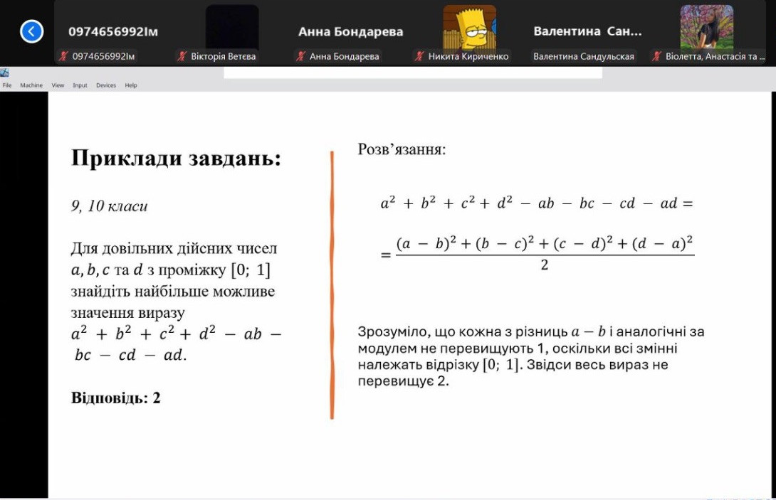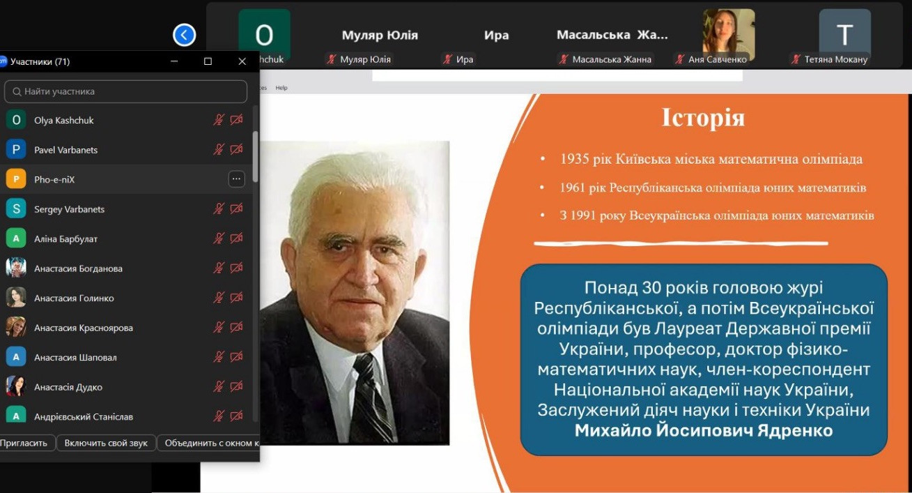 7 травня до Дня науки кафедрою вищої математики і статистики Навчально-наукового інституту природничо-математичних наук, інформатики та менеджменту Університету Ушинського та кафедрою математики, інформатики та інформаційної діяльності факультету управління, адміністрування та інформаційної діяльності Ізмаїльського державного гуманітарного університету в рамках співробітництва було проведено воркшоп «Розв’язання задач учнівських олімпіад з математики в рамках фахової підготовки студентів спеціальності 014.04 Середня освіта. Математика».У заході прийняли участь студенти та викладачі університетів, вчителі математики Одеської області. Спікер Сергій Михайлович Сапрікін, кандидат фізико-математичних наук, доцент кафедри вищої математики і статистики Університету Ушинського, член журі III та IV етапів Всеукраїнської учнівської олімпіади з математики розповів присутнім про історію виникнення Всеукраїнської учнівської олімпіади з математики, ознайомив їх зі структурою олімпіади, процедурою проведення олімпіади, перевірки учнівських робіт на III та IV етапах та формування команди України до участі в Міжнародній олімпіаді з математики. Також спікер зупинився на найбільш поширених помилках, які припускають учні при виконанні олімпіадних завдань та оформленні робіт. Потім було розглянуто деякі задачі для 8-11 класів, які пропонувались для розв’язування на IV етапі Всеукраїнської учнівської олімпіади з математики 2024 року, розібрано та проаналізовано їх розв'язання. Наприкінці заходу відбулось ефективне обговорення розглянутих питань. Координаторами заходу виступили Яковлєва Ольга Миколаївна, кандидат фізико-математичних наук, доцент кафедри вищої математики і статистики Університету Ушинського та Воробйов Яків Анатолійович, кандидат фізико-математичних наук, доцент кафедри математики, інформатики та інформаційної діяльності Ізмаїльського державного гуманітарного університету.
