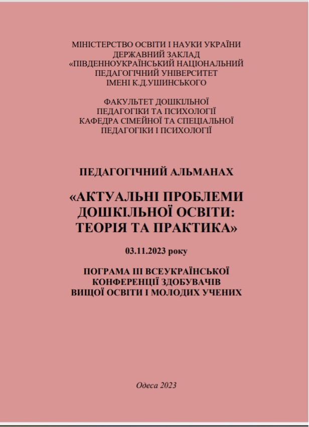 03.11.2023 року у стінах факультету дошкільної педагогіки та психології, на кафедрі сімейної та спеціальної педагогіки і психології Державного закладу «Південноукраїнський національний педагогічний університет імені К. Д. Ушинського» відбулася ІІІ-я Всеукраїнська конференція здобувачів вищої освіти і молодих учених «АКТУАЛЬНІ ПРОБЛЕМИ ДОШКІЛЬНОЇ ОСВІТИ: ТЕОРІЯ ТА ПРАКТИКА»