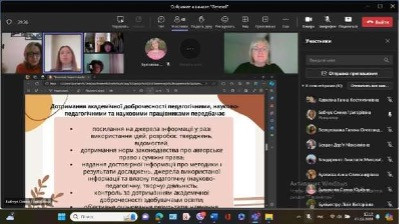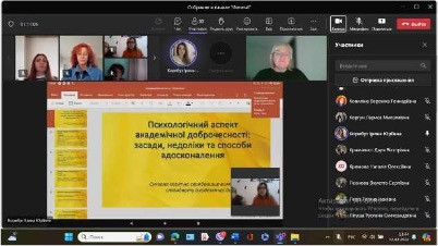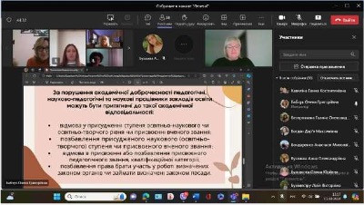 «Дотримання академічної доброчесності. Види порушень академічної доброчесності»; кандидат педагогічних наук, доцент Вероніка Ковиліна з темою: «Види академічної відповідальності».