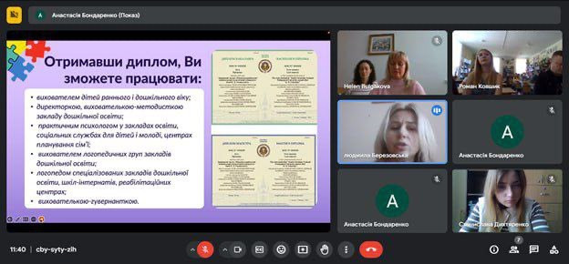 Ключовим моментом зустрічі було представлення завідувачкою кафедри теорії та методики дошкільної освіти Людмилою Березовською освітньо-професійних програм (ОПП) факультету дошкільної педагогіки та психології, а саме: «Дошкільна освіта. Практична психологія в закладах дошкільної освіти» та «Дошкільна освіта. Логопедія в закладах дошкільної освіти». З потенційними абітурієнтами було обговорено особливості навчання на ОПП, окреслено переваги навчання в Університеті Ушинського (участь у наукових проєктах, грантах, стипендійні програми), можливості продовження навчання за другим (магістерським) рівнем вищої освіти, перспективи правцевлаштування.