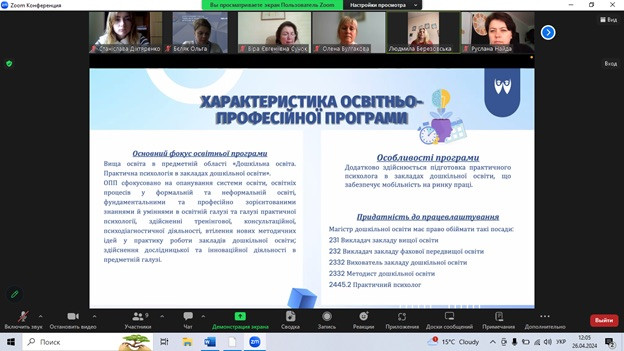 26 квітня 2024 року з ініціативи гаранта освітньо-професійної програми «Дошкільна освіта. Практична психологія в закладах дошкільної освіти» за другим (магістерським) рівнем вищої освіти, докторки педагогічних наук, професорки, завідувачки кафедри теорії та методики дошкільної освіти Людмили Березовської відбулося обговорення освітньо-професійної програми зі стейкголдерами та роботодавцями.