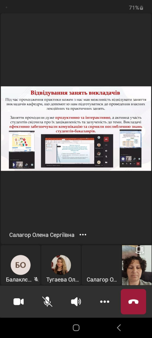 Під час практики студенти отримали змогу спробувати свої сили у ролі викладачів, провели лекційні, практичні заняття, виховні заходи зі здобувачами освіти, долучалися до організації наукової роботи кафедри.