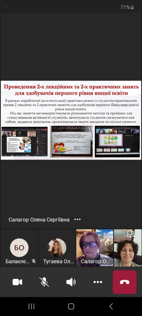 10 травня 2024 р. зі здобувачами заочної форми навчання, другого (магістерського) рівня вищої освіти, освітньо-професійної програми «Дошкільна освіта. Практична психологія в закладах дошкільної освіти» в онлайн форматі було проведено захист виробничої (асистентської) практики.