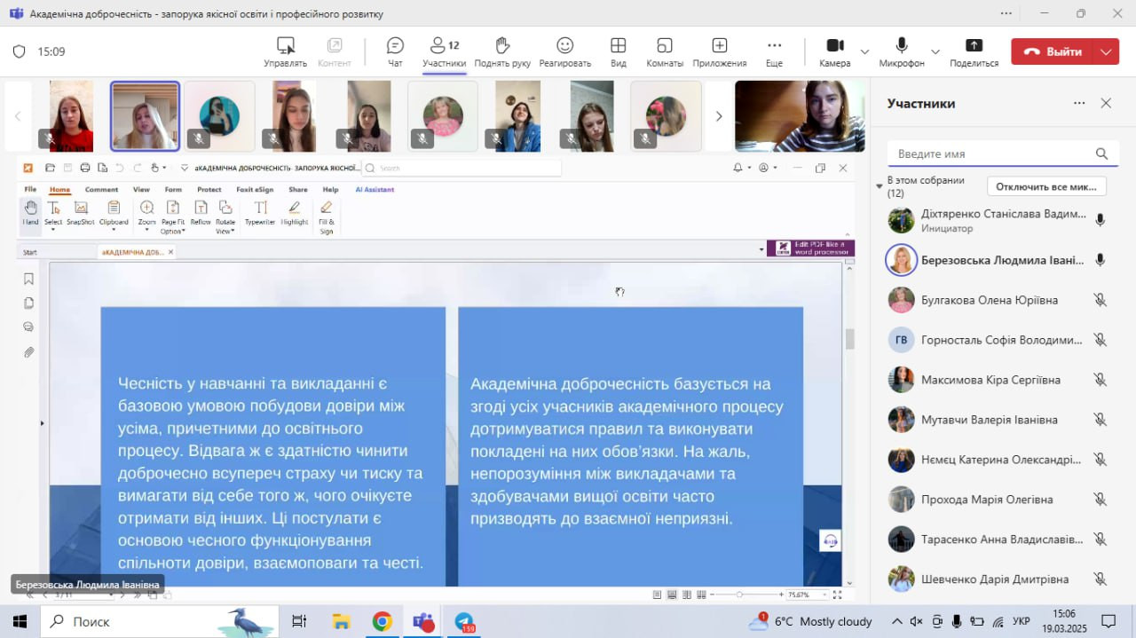 19 березня 2025 року на факультеті дошкільної педагогіки та психології Університету Ушинського було проведено круглий стіл на тему «Академічна доброчесність – запорука якісної освіти» за участю здобувачів третього року навчання спеціальності А2 Дошкільна освіта.