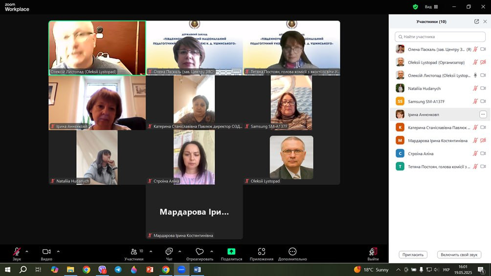19 травня 2025 року в Державному закладі «Південноукраїнський національний педагогічний університет імені К. Д. Ушинського» відбулося обговорення проєкту освітньо-професійної програми підготовки здобувачів вищої освіти «Дошкільна освіта. Управління закладом дошкільної освіти» для здобувачів другого (магістерського) рівня вищої освіти.