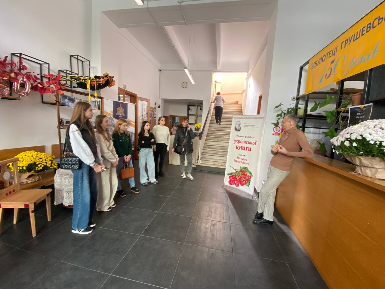30 жовтня 2025 року здобувачі третього курсу разом із кураторкою академічної групи Станіславою Діхтяренко та завідувачкою кафедри теорії та методики дошкільної освіти Людмилою Березовською відвідали Одеську обласну універсальну наукову бібліотеку ім. М. Грушевського – одну з найбільших і найстаріших книгозбірень Одеси. Екскурсію провів Євген Забіянов, доктор філософії, завідувач музею української книги.
