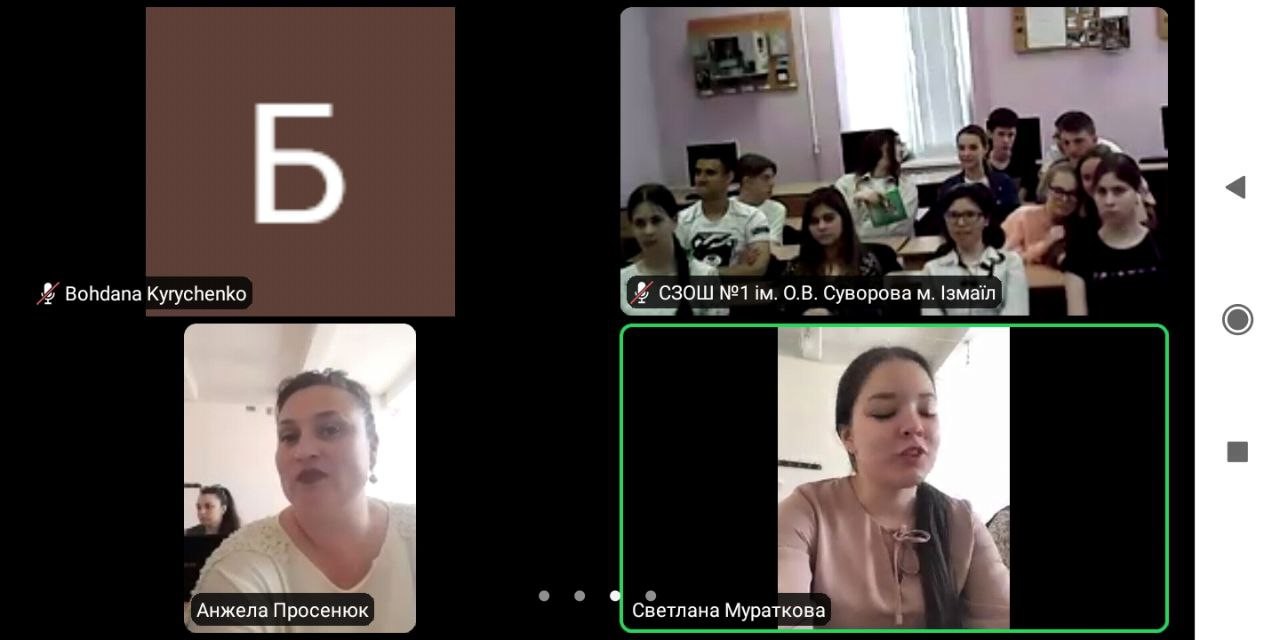 27 травня за сприяння декана факультету дошкільної педагогіки та психології ДЗ «Південноукраїнський національний педагогічний університет імені К.Д. Ушинського», доктора психологічних наук Олени Булгакової та викладачів кафедри теорії і методики дошкільної освіти Ю. Руденко та А. Просенюк було проведено онлайн-зустріч із випускниками спеціалізованої загальноосвітньої школи №1 ім. О. В. Суворова ІІІ ступенів з поглибленим вивченням англійської мови та загальноосвітньої школи № 10 І-ІІІ ступенів міста Ізмаїл.