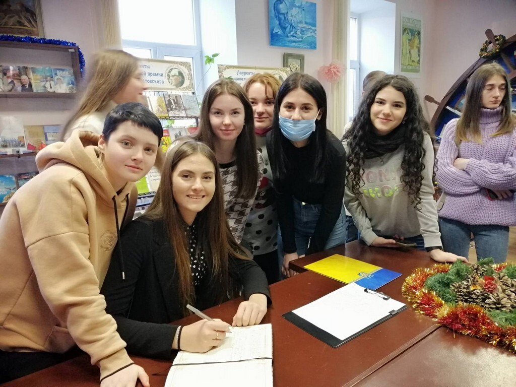 Завідувачка бібліотеки – Карина Вікторівна Апаринова розповіла студентам про історію створення українського гімну, яка бере свій початок з далекого 1862 року, коли український етнограф, фольклорист і поет Павло Чубинський написав вірш «Ще не вмерла Україна».