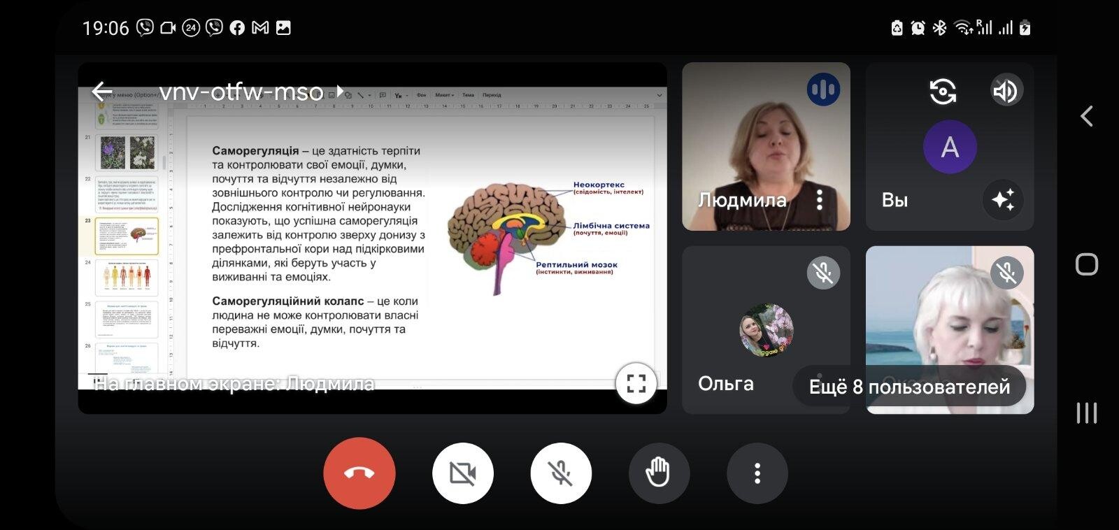 07.04.2022 року відбулося навчання від психологічного центру "FIDES", для викладачів кафедри сімейної та спеціальної педагогіки і психології. Тема тренінгу. "Як захистити себе та дитину від стресових реакцій в критичних ситуаціях". Тренер – Матохнюк Л. О. – доктор психологічних наук, професор, практичний психолог, голова Вінницького міського відділення Асоціації сімейних психологів України, психолог ПЦ ''FIDES".
