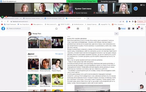 14 квітня 2022 року Людмила Березовська та Олена Бабчук взяли участь у вебінарі, який провела кандидат психологічних наук, юнгіанський консунльтант, казкотерапевт Разида Ткач.