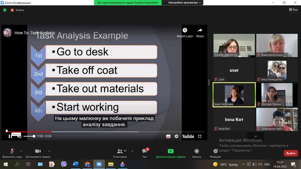 Спікер проекту Sophie Ganevih ознайомила представників кафедри сімейної та спеціальної педагогіки і психології з методикою АВLL-R, необхідною для оцінювання дітей із аутизмом. Також спеціалісти отримали знання щодо визначення цілей та плану роботи з дітьми ООП, за сферами: співробітництво, рецептивне мовлення, імітація, прохання.