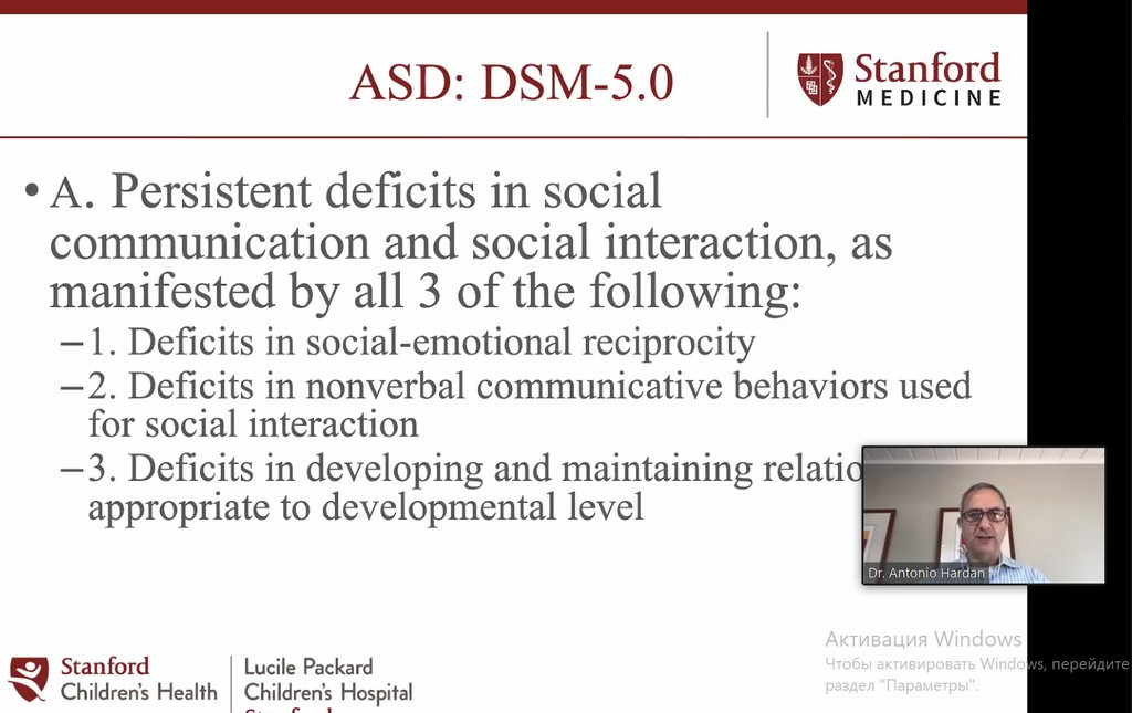 Тема другого вебінару «Психофармакологія при аутизмі». Лекція відбувалась за наступною програмою «Психофармакологічне лікування розладів аутистичного спектру, оновлення клінічних та наукових досліджень». Спікер вебінару Antonio Hardan.