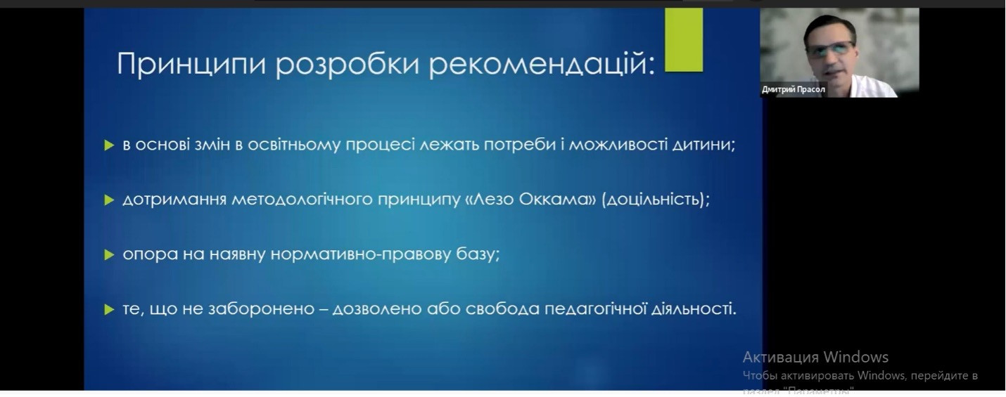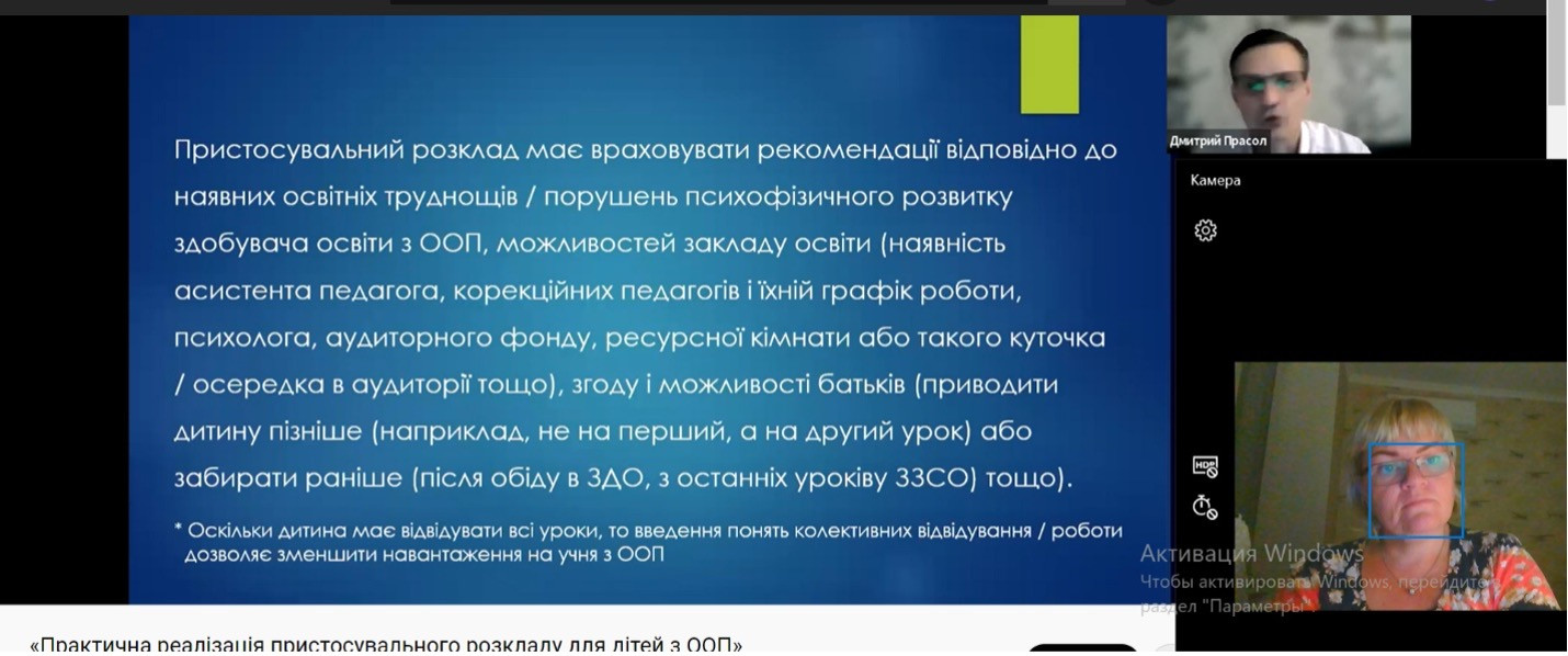 Під час вебінару було обговорено наступні теми: критерії укладання зміненого розкладу для здобувачів освіти з ООП, порівняльна характеристика адаптованого і модифікованого розкладів.
