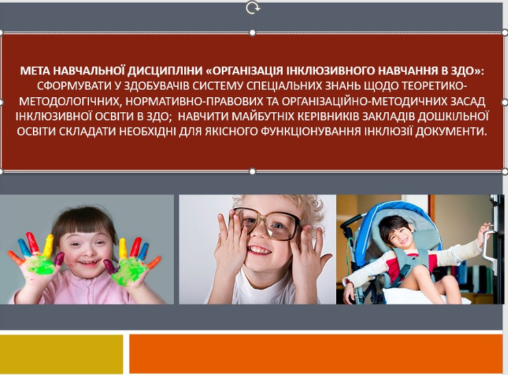 04 березня 2023 року доцентом кафедри сімейної та спеціальної педагогіки і психології Ларисою Миколаївною Коргун була презентована дисципліна «Організація інклюзивного навчання у закладі дошкільної освіти» здобувачам першого курсу другого (магістерського) рівня вищої освіти факультету дошкільної педагогіки і психології щодо обрання вибіркових дисциплін на наступний навчальний рік