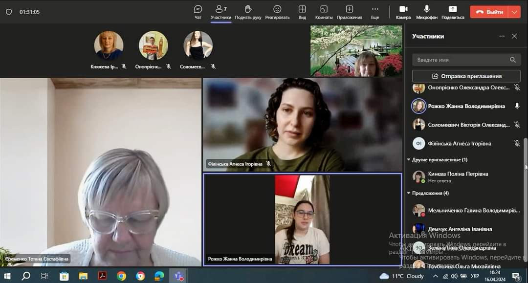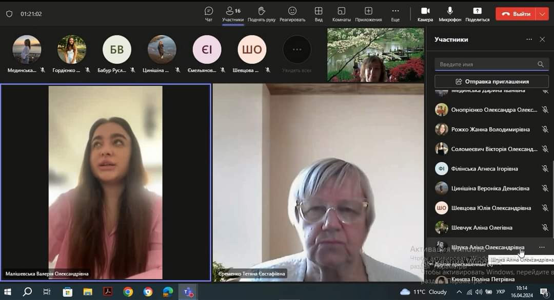 16 квітня провели зі здобувачами вищої освіти 4 року навчання ДВ та ЗВ підсумкову конференцію з виробничої (педагогічної з англійської мови у середній школі) практики освітньо-професійної програми «Середня освіта (Мова і література (англійська))» за спеціальністю 014 Середня освіта (Мова і література (англійська)), яка тривала два місяця.