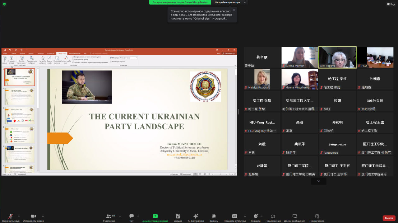 01-02 квітня 2024 року кафедрою перекладу і теоретичної та прикладної лінгвістики Державного закладу «Південноукраїнський національний педагогічний університет імені К. Д. Ушинського» і Харбінським інженерним університетом було проведено Х Міжнародну наукову онлайн конференцію «Актуальні проблеми філології і професійної підготовки фахівців у полікультурному просторі», в якій взяли участь провідні науковці, викладачі іноземних мов і студенти.