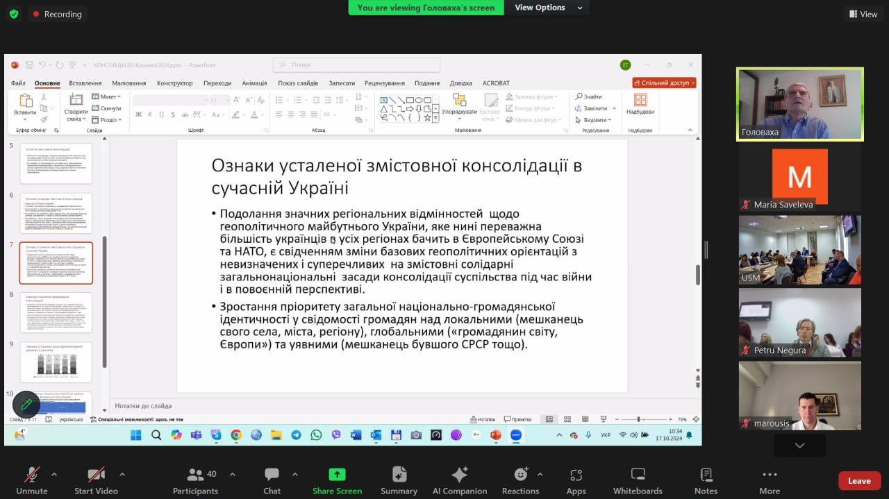 Здобувачі першого (бакалаврського) рівня вищої освіти спеціальності 035 «Переклад», члени студентського наукового гуртка «Південноукраїнські наукові студії» (керівник проф. Оксана Петінова) 17-18 жовтня 2024 року взяли участь у міжнародній науково-практичній конференції «Посилення консолідації суспільства та ролі людського капіталу на шляху вступу України та республіки Молдова до Європейського Союзу», організаторами якої є кафедра філософії, соціології та менеджменту соціокультурної діяльності Університету Ушинського, Південноукраїнське відділення Соціологічної асоціації України, Асоціація соціологів та демографів Молдови. До участі в конференції долучилися науковці Інституту соціології НАН України, Центра Соціології та Соціальної психології Кишинівського державного університету Республіки Молдова, ЗВО Києва, Одеси, Харкова, Кривого Рогу. В панельній дискусії обговорено актуальні питання, пов'язані з визначенням чинників соціальної консолідації під час війни, виклики та шляхи відтворення людського капіталу України в умовах війни, особливості ідентичності вимушених українських мігрантів, проблеми та перспективи інтеграції української освіти та науки в європейський освітньо-науковий простір, практичні аспекти зміцнення консолідації суспільства у воєнний час. Студенти представили наукові розвідки на тему «Безпека людини: захист громадян від дій дезінформації та маніпулювання громадською думкою» (Анастасія Лисяк), «Міжнародна співпраця та ефективність заходів безпеки» (Анастасія Груша), «Безпека людини як пріоритет державної політики» (Білоровська Альона), «Безпека людини: захист громадян від соціальних ризиків і загроз безпеці» (Вікторія Діденко), «Соціальна безпека як елемент європейської інтеграції» (Колісніченко Ксенія), «Роль медіа та інформаційних технологій у забезпеченні безпеки громадян» (Комариця Юлія), «Сivil security in the context of disinformation and protecting against social risks and strengthening the resilience of society» (Мазур Юлія), «Соціальна безпека в питаннях забезпечення стабільності розвитку країни» (Софія Падун), «Механізми захисту громадян від маніпулювання громадською думкою: роль медіа» (Марія Савельєва), «Безпека людини: захист громадян від дій дезінформації» (Анастасія Ягольницька). Тези доповідей будуть представлені в збірнику матеріалів конференції.