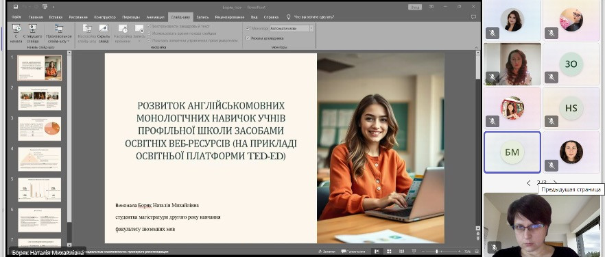18 листопада 2024 на платформі Microsoft Teams лабораторією когнітивних і комунікативних досліджень кафедри германської філології та методики викладання іноземних мов було проведено ІІ науково-практичний семінар для молодих учених: «Англійська мова та література: від теорії до практики».