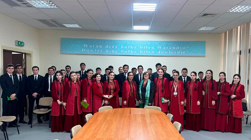 У рамках культурно-освітнього обміну в Інституті міжнародних відносин Туркменістану відбулася лекція української науковиці, доцента кафедри перекладу, теоретичної та прикладної лінгвістики Державного закладу «Південноукраїнський національний педагогічний університет імені К.Д.Ушинського»,(Одеса) @ushynsky_university пані Еліни Ларіної.