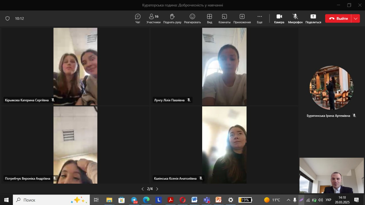 20.03.2025 була проведена бесіда зі студентами 1 курсу бакалаврата 1-ої академічної підгрупи на тему: «Академічна доброчесність у навчанні».