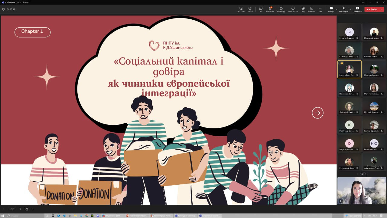 10 вересня 2025 року здобувачі першого (бакалаврського) рівня вищої освіти ОПП «Переклад (перша – англійська, друга – китайська)» Ткаченко Анастасія, Іщенко Анна, Бєляєвська Вікторія та Попович Елеонора, члени студентського наукового гуртка «Південноукраїнські наукові студії» (керівник – проф. Петінова О. Б.), в межах заходів щодо реалізації Стратегії комунікації з питань європейської інтеграції України (розпорядження МОН від 25.06.2025 р. № 622-р) взяли активну участь у Міжкафедральному круглому столі на тему «Європейська інтеграція: виклики та перспективи крізь призму політики, філософії й соціокультурних практик». У фокусі дискусій розглядалися питання трансформації українського суспільства в умовах євроінтеграції: від ролі довіри й соціального капіталу до викликів міграції, тіньової зайнятості та нових ідентичностей; цінності бізнесу, сталий розвиток і політичні аспекти – баланс суверенітету, вплив гібридної війни, молодіжна участь. Європейська інтеграція постала як багатовимірний процес, що змінює структури, цінності та ідентичності. Формат діалогу не лише створив майданчик для міждисциплінарного обговорення, а й сприяв формуванню ключових компетентностей: аналітичного та критичного мислення, аргументованого висловлення власної позиції, навичок академічної дискусії, міждисциплінарного бачення суспільних процесів та інтеграції наукових підходів із практичними викликами сучасності.