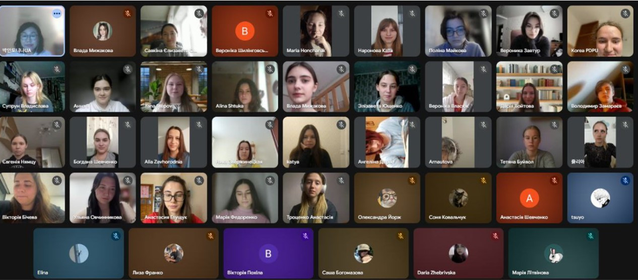 В онлайн-заході взяли участь студенти спеціальності «Середня освіта (Мова та зарубіжна література (корейська))». З відеопривітаннями до учасників звернулися надзвичайний і повноважний посол Республіки Корея в Україні пан Пак Кічан, директор Освітнього корейського центру в Україні Джон Чон Юн, а також декан факультету іноземних мов Попова Олександра Володимирівна.