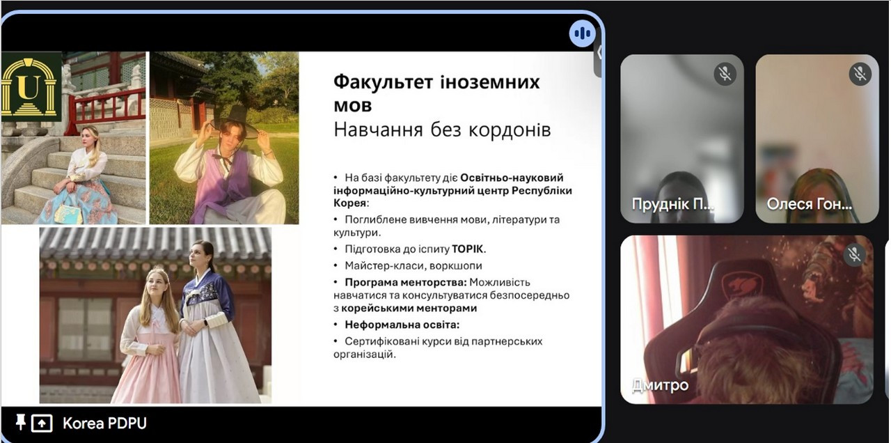 06 квітня 2026 року в рамках діяльності ОНІКЦ Республіки Корея в Університеті Ушинського відбулася профорієнтаційна зустріч з учнями Харківського ліцею №181 «Дьонсурі» в онлайн-форматі.