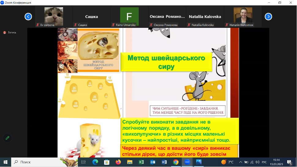 3 березня 2023 року в межах співпраці між ЗВО – партнерами на запрошення гаранта ОПП «Середня освіта (Мова і література (англійська))» другого (магістерського) рівня вищої освіти проф. Т.Є. Єременко та за сприянням доц. Н.О. Валентюк відбулася зустріч з кандидатом економічних наук, доцентом кафедри менеджменту Одеського державного аграрного університету, Н.О. Теличко, яка провела гостьову лекцію-тренінг на тему «Тайм-менеджмент – навчись керувати своїм часом». До заходу доєдналися здобувачі першого (бакалаврського) та другого (магістерського) рівнів вищої освіти ОПП «Середня освіта (Мова і література (англійська))», науково-педагогічні працівники кафедри германської філології (завідувач кафедри проф. Т.Є. Єременко, доц. І.О. Лук’янченко та інші), гарант ОПП «Середня освіта (Мова і література (англійська))» першого (бакалаврського) рівня доц. К. І. Зайцева.