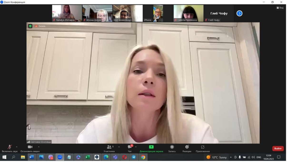 На обговоренні в Zoom були присутні Гарант ОПП «Переклад (перша-англійська, друга-китайська)» бакалаврського рівня, завідувач кафедри перекладу і теоретичної та прикладної лінгвістики, к.філол.н., доцент Ілона ДЕРІК, Гарант ОПП «Переклад (перша-китайська, друга-англійська)» бакалаврського рівня, декан факультету іноземних мов, д.пед.н., професор кафедри перекладу і теоретичної та прикладної лінгвістики Олександра ПОПОВА, Гарант ОПП «Переклад з англійської українською» магістерського рівня, к.філол.н., доцент кафедри перекладу і теоретичної та прикладної лінгвістики Наталя ЖМАЄВА, член фокус-групи ОПП «Переклад з англійської українською» магістерського рівня д.філол.н., доцент кафедри перекладу і теоретичної та прикладної лінгвістики Олександр ІЛІАДІ.