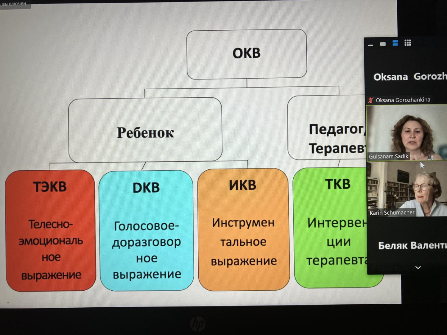 26 червня 2023 року викладачі та студенти факультету музичної та хореографічної освіти взяли участь у вебінарі з музичної терапії, який провела професорка музикотерапії, засновниця ЕBQ-методу Карін Шумахер для вчителів музичного мистецтва і музикотерапевтів України. Карін Шумахер – професор Берлінського університету мистецтв, вивчала музичну терапію у Відні та елементарну музично-танцювальну педагогіку в Інституті Орфа в Зальцбурзі. Вона багато років працювала музичним терапевтом, дитячим і підлітковим психотерапевтом у клінічному контексті, а також у приватній практиці. У 1984 році Карін Шумахер започаткувала академічний курс з музикотерапії в Берлінському університеті мистецтв, де і сьогодні працює професором музикотерапії, а також читає лекції в Університеті музики та мистецтв у Відні, Цюріху та Лювені. Разом з Клодін Кальвет вчена розробляє «EBQ метод» для оцінки якості стосунків і працює у дослідницькому проекті у Бергенському університету в Норвегії. Протягом зустрічі, яка тривала майже чотири години, Карін Шумахер ознайомила учасників вебінару з можливостями використання психогігієнічних та психотерапевтичних функцій музики у ракурсі позитивного впливу на психоемоційний стан дитини, продемонструвала практичні методи і форми застосування музичної терапії для корекції негативних психоемоційних станів дітей різного віку. Наприкінці зустрічі пані Шумахер відповіла на численні запитання слухачів і висловила захоплення освітянами, які навіть в умовах повномасштабної війни мають силу навчати, надихати, допомагати, підтримувати, втішати, вести за собою. Мають силу розбудовувати освіту та змінювати її на краще. Мають силу наближати Перемогу.