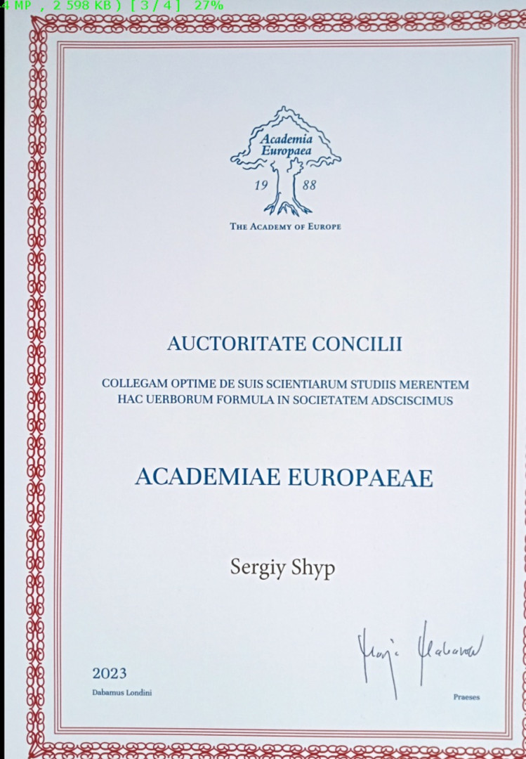 Ми дуже пишаємося цією подією і витіємо нашого талановитого вченого – Сергія Васильовича Шипа з таким високим досягненням на його науково-творчому шляху.