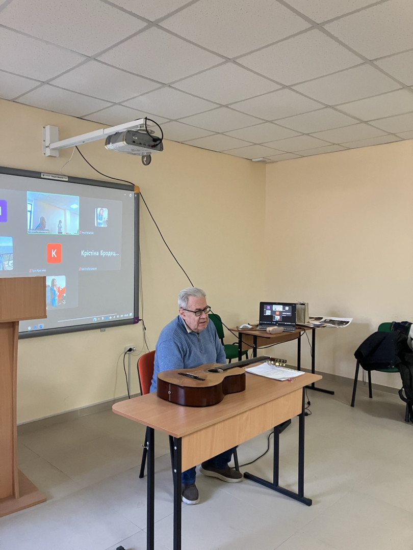 11 лютого 2025 року у межах вивчення дисципліни «Практикум виконання авторської пісні» на факультеті музичної та хореографічної освіти відбулася творча зустріч здобувачів другого курсу (бакалаврського) рівня вищої освіти з автором-виконавцем, кандидатом психологічних наук, доцентом кафедри загальної та диференціальної психології Університету Ушинського Ю. Г. Черножуком.