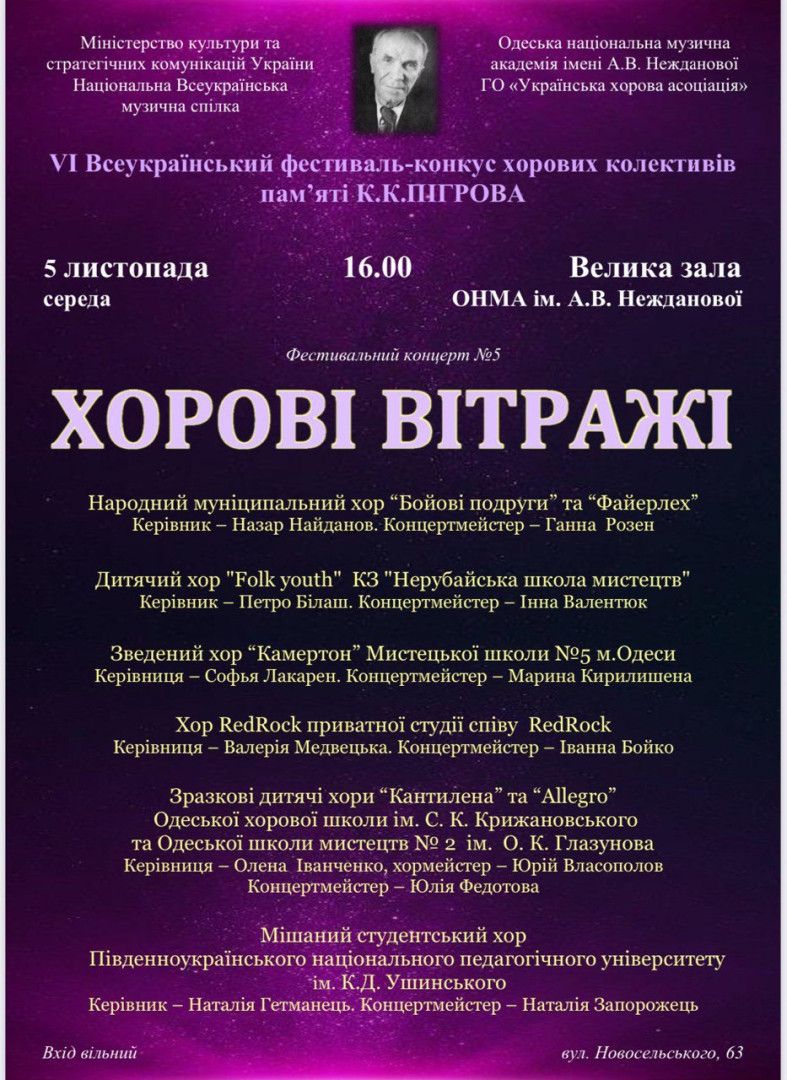5 листопада 2025 року у Великій залі Одеської національної музичної академії імені А. В. Нежданової відбулася подія, яка вкотре засвідчила високий рівень мистецької підготовки наших здобувачів. Мішаний студентський хор Навчально-наукового інституту музичного і перформативного мистецтва та соціокультурних практик (ННІМПМСП) – один із провідних творчих колективів Університету Ушинського, що є гордістю інституту та багаторічним носієм хорових традицій закладу – став яскравим учасником фестивального концерту «Хорові Вітражі» у межах VI Всеукраїнського фестивалю-конкурсу хорових колективів пам'яті К.К. Пігрова. В концерті взяли участь такі відомі хорові колективи Одеси, як Народний муніципальний хор «Бойові подруги» та «Файерлех»; зразкові дитячі хори «Кантилена» та «Allegro», які представляли Одеську хорову школу імені С. К. Крижановського та Одеську школу мистецтв № 2 імені О. К. Глазунова; хор «Камертон» мистецької школи №5. Щире захоплення публіки викликав виступ хору «RedRock» приватної студії співу, яким успішно керує магістрантка ННІМПМСП – Валерія Медвецька. Виступ студентського хору Університету Ушинського під керівництвом Наталії Гетманець за концертмейстерського супроводу Наталії Запорожець став потужним фінальним акордом, продемонструвавши високий рівень вокальної культури, емоційну глибину та здатність колективу успішно виконувати найскладніші твори хорової літератури, що гідно представлятиме Університет на мистецьких сценах країни та світу.