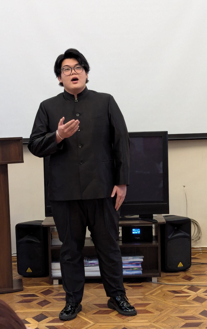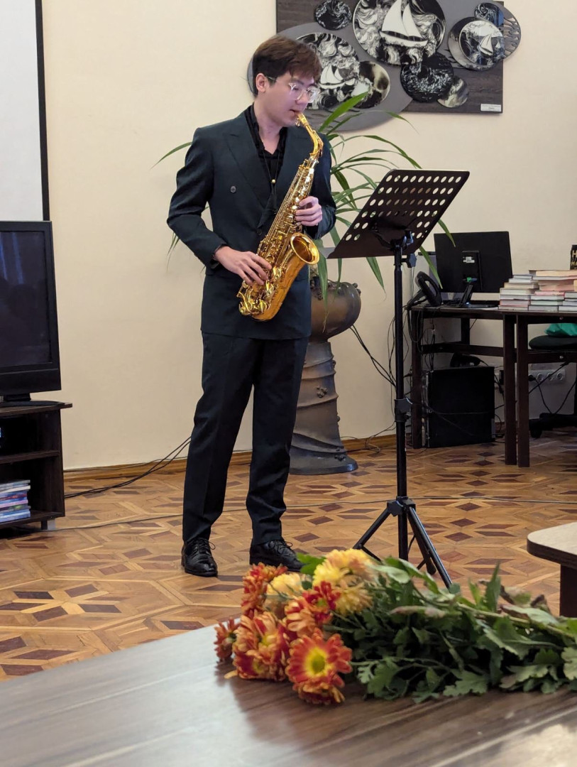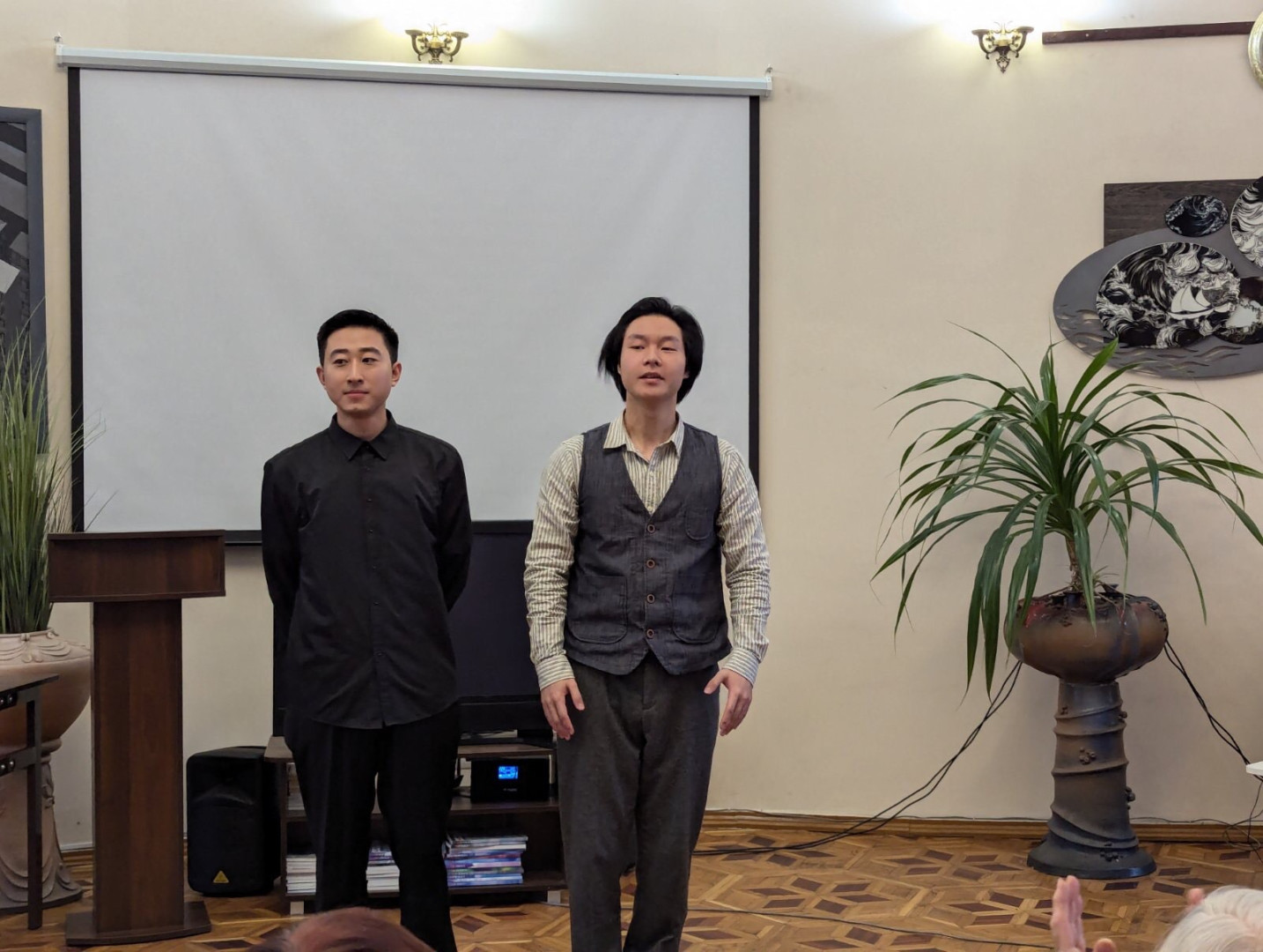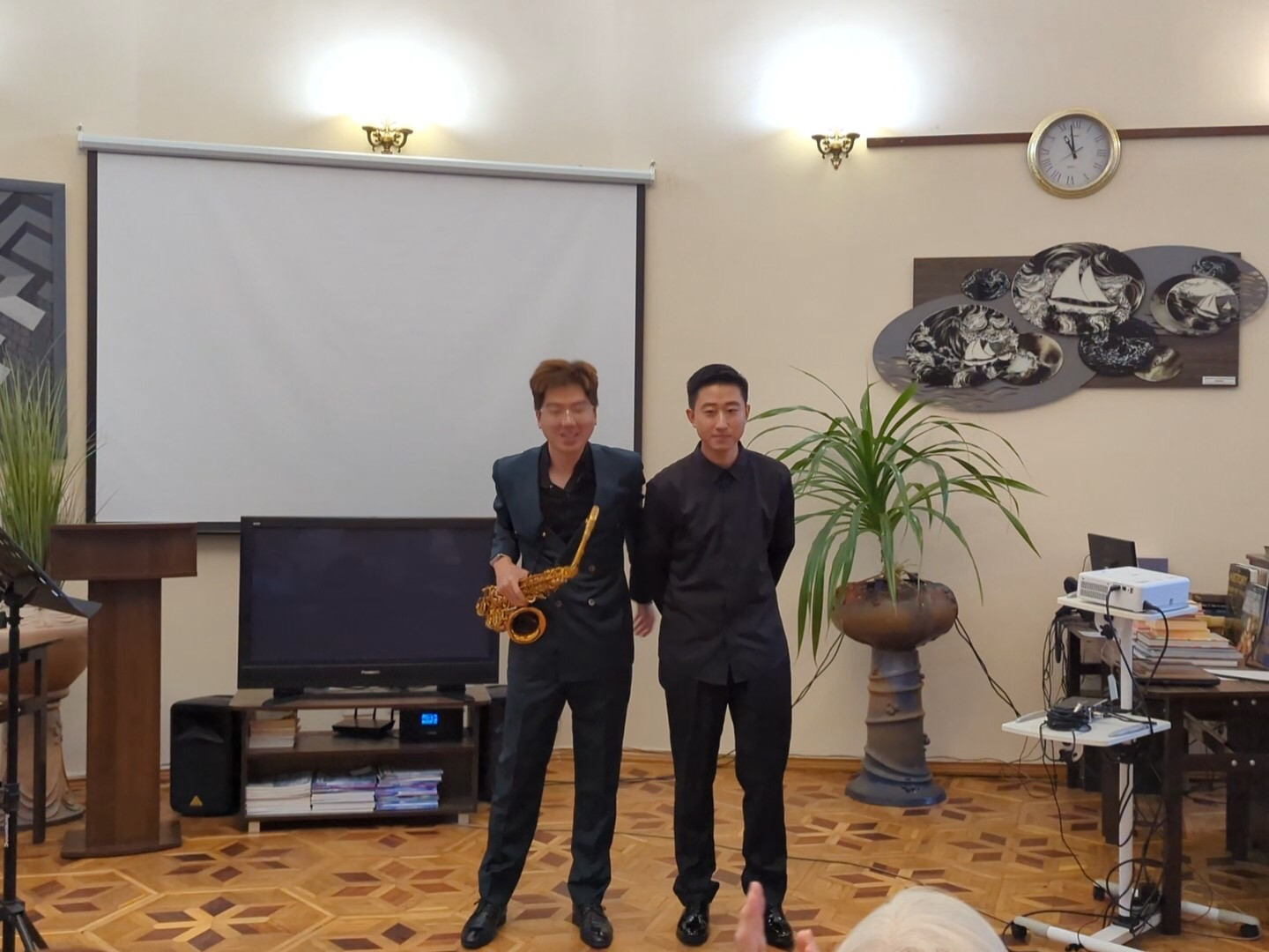 Справжньою кульмінацією концерту став вихід на сцену наших аспірантів, які вкотре довели свій високий фаховий рівень та вміння інтегрувати різні музичні традиції. Саксофоніст Чжоу Тайю (у дуетах під супровід Ху Ї та Юй Ціцзя) і вокаліст Лю Чжиго (партія фортепіано – Юй Ціцзя) зачарували слухачів чуттєвим та майстерним виконанням китайських творів. Ці виступи яскраво продемонстрували віртуозну техніку, виконавську культуру та зрілу ансамблеву майстерність наших здобувачів.