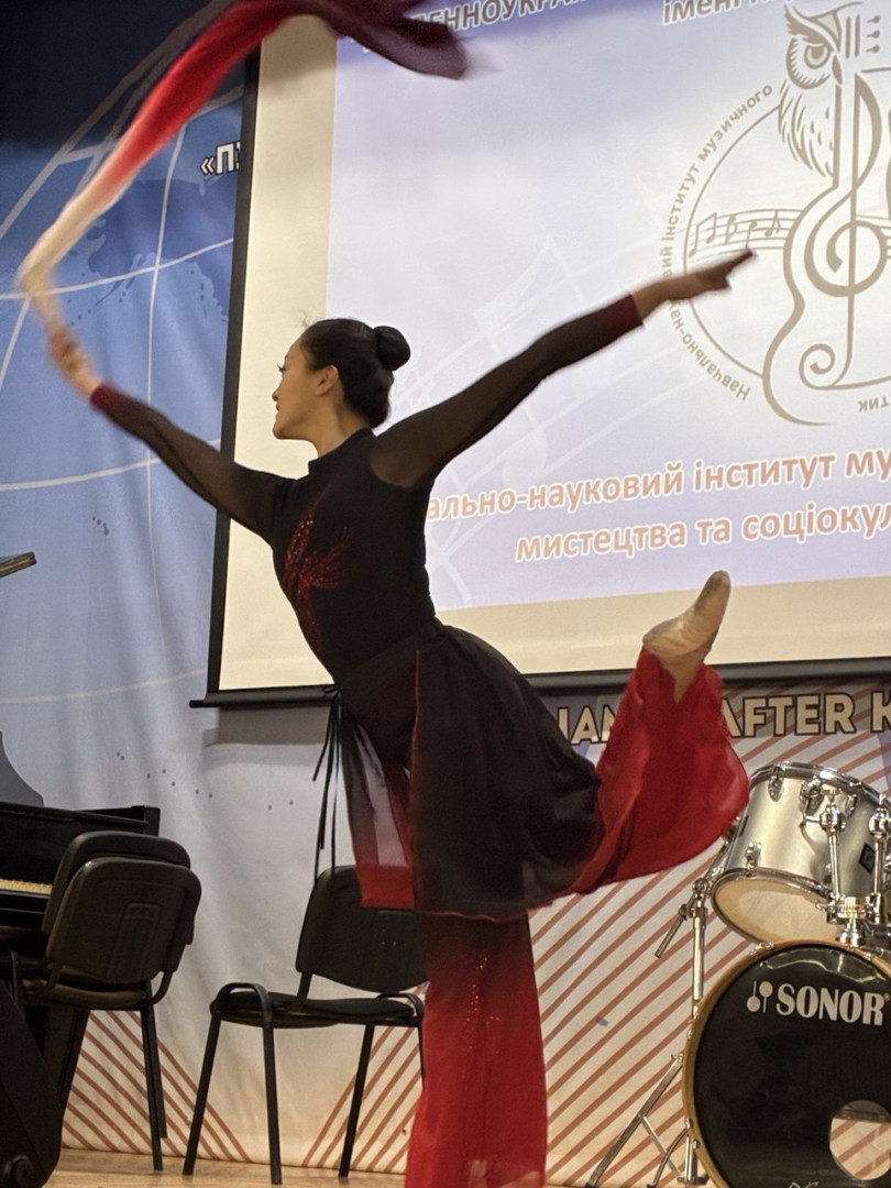 Завершилася подія чудовим концертом студентів ННІМПМСП. Яскраві номери естрадного вокалу студенток Д.Полякової, В.Киричок, Є. Литвин, танцювальні композиції Т.Скрут, Яо Цзінью та учасників чудового ансамблю «PianoDrums», лаурета міжнародного конкурсу у складі: Юй Ціцзя, Ху Ї (фортепіано), Івана Петрова, Ольги Кочневої, Ден Сіює (ударні інструменти) ще раз довели високій професійний рівень наших музикантів і хореографів.