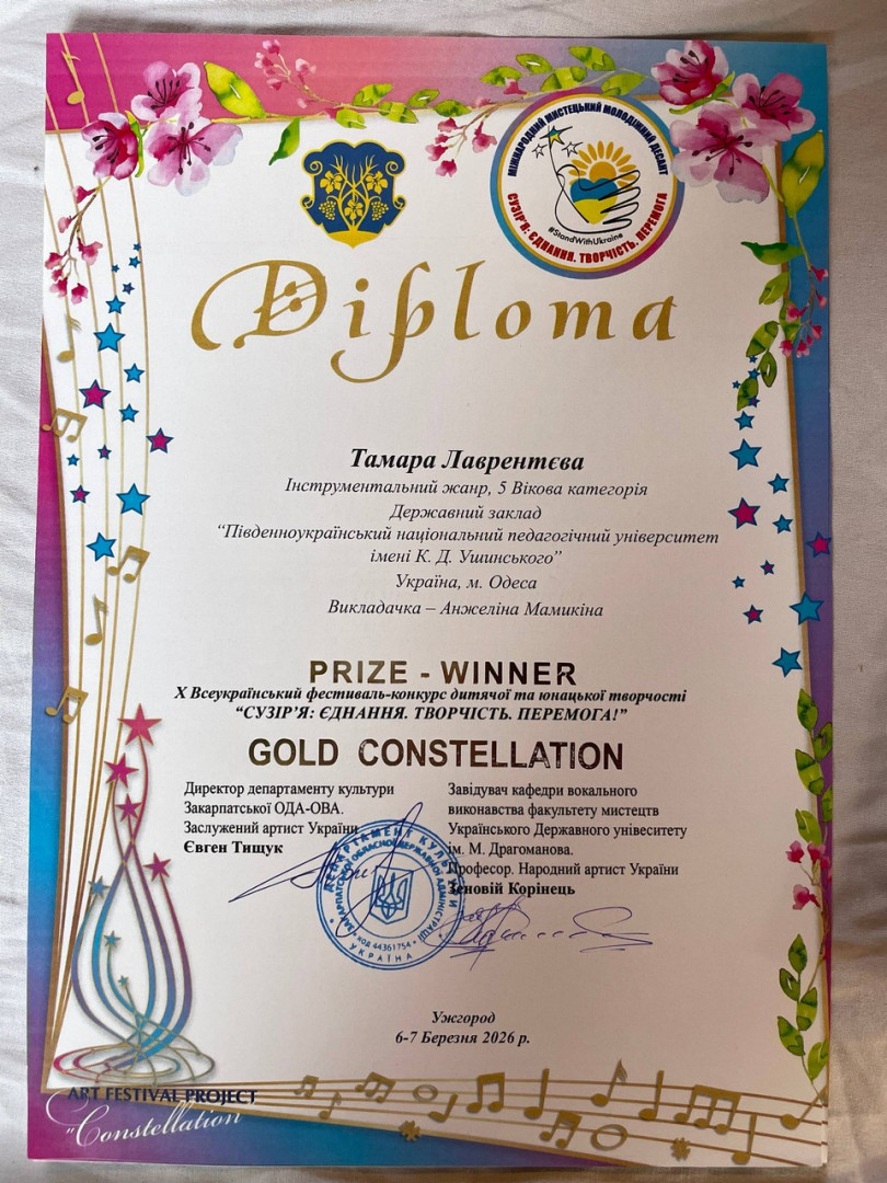 Тамара Лаврентєва – Gold Constellation, номінація Інструментальний жанри, викладач Анжеліна Мамикіна;