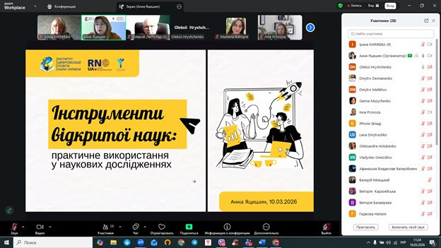 10 березня 2026 року аспіранти ОНП «Філософія» та магістранти ОНП «Філософія бізнесу та соціокультурних практики», наукові керівники та викладачі кафедри філософських і соціологічних студій та соціокультурних практик долучилися до гостьової лекції «Інструменти відкритої науки: практичне застосування у наукових дослідженнях». Лекторкою виступила д. пед. н. Анна Яцишин – провідний науковий співробітник Інституту цифровізації освіти НАПН України, яка має значний досвід у сфері цифровізації освіти, відкритої науки та використання сучасних цифрових інструментів у науковій діяльності.