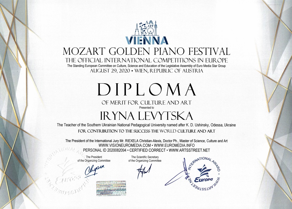 Студент факультету музичної та хореографічної освіти Богдан Кирияк здобув чергову перемогу – звання лауреата І ступеню на Міжнародному фестивалі «Мozart golden piano festival», який пройшов в м. Відень (Австрія) 29 серпня 2020 року.