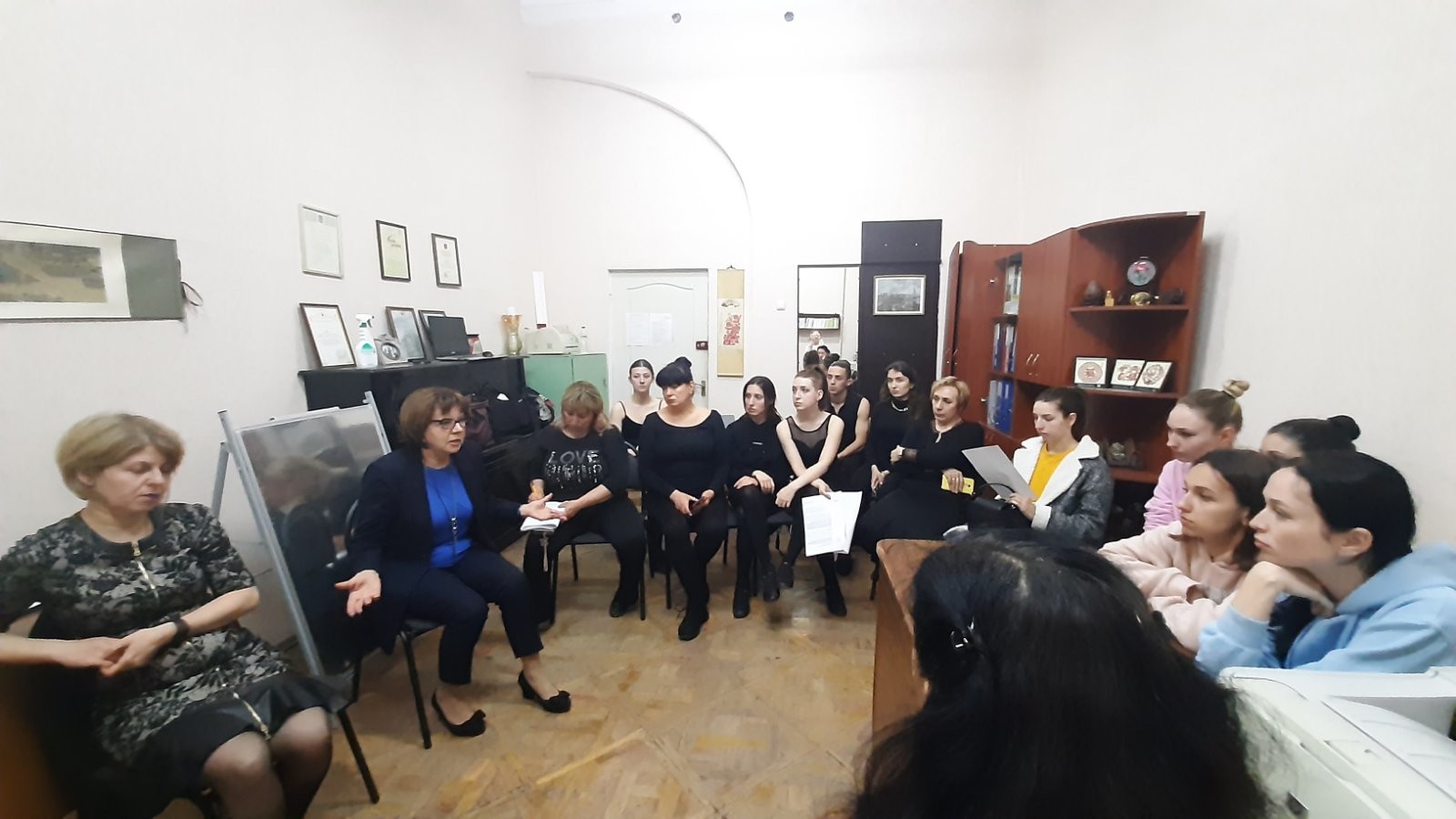 На кафедрі музичного мистецтва і хореографії факультету музичної та хореографічної освіти Університету Ушинського було проведено обговорення освітньо-професійних програм «Середня освіта (Хореографія)» для першого (бакалаврського) рівня вищої освіти, «Середня освіта (Хореографія)» для другого (магістерського) рівня вищої освіти, «Хореографія» для першого (бакалаврського) рівня вищої освіти, «Хореографія» для другого (магістерського) рівня вищої освіти. В обговоренні взяли участь здобувачі, гаранти ОПП, члени проектних груп, декан Н.К. Білова, завідувачка кафедри О.Є. Реброва.