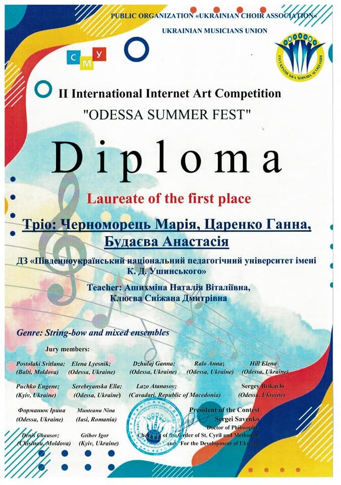 Приємно, що й влітку майбутні вчителі музичного мистецтва приймають активну участь у конкурсах, здобувають призові місця, що сприяє реалізації їх творчого потенціалу.