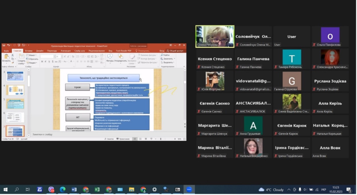 Викладачі факультету музичної та хореографічної освіти взяли участь у проведенні науково-методичних студій «Коло співпраці: наука-освіта» для професійних спільнот вчителів закладів загальної середньої освіти міста Чорноморська 14-15 лютого 2023 року.