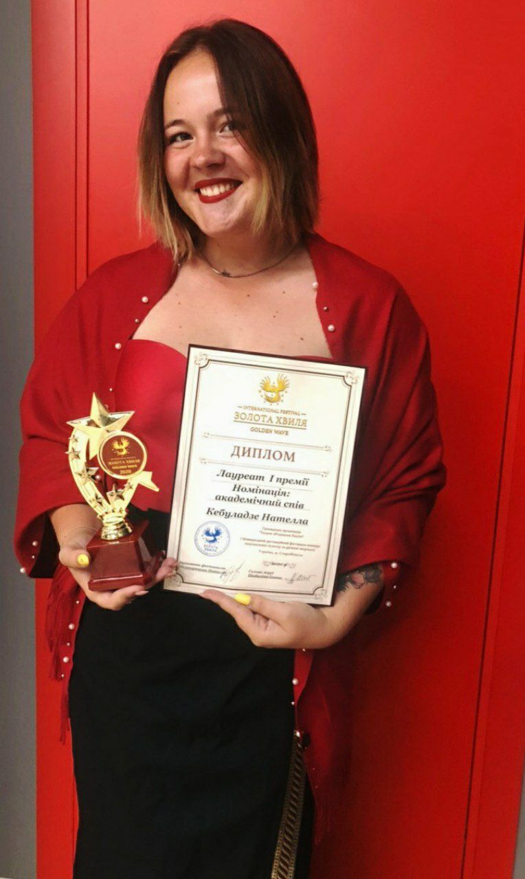 Студентка факультету музичної та хореографічної освіти Університету Ушинського Нателла Кебуладзе здобула нову перемогу - звання лауреата І премії в Міжнародному фестивалі конкурсі «Золота хвиля». Щиро вітаємо Нателлу та її викладача Шафарчук Т.Г. з перемогою! Бажаємо творчої наснаги і нових яскравих перемог!