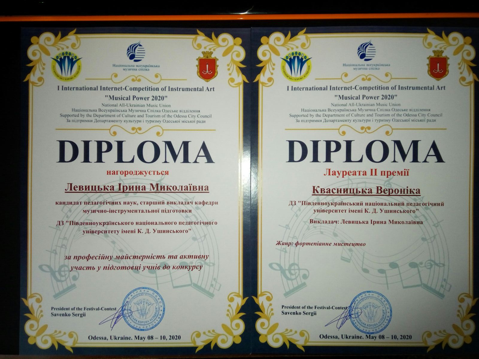 З 8 по 10 травня 2020 року у місті Одесі за підтримки Департаменту культури і туризму Одеської міської ради відбувся I International Internet - Competition of Instrumental Art "Musical Power 2020".