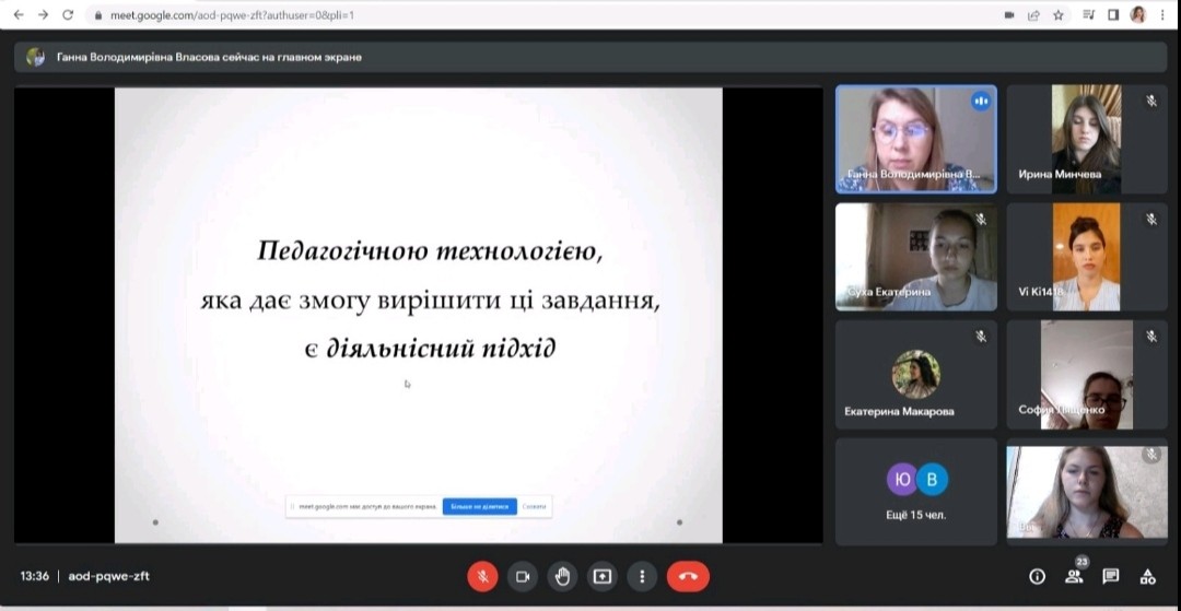 Власова Ганна Володимирівна. Під час тренінгу було визначено принципи, характеристики діяльнісного підходу, виокремлено його роль у сучасній початковій освіті. Студенти брали активну участь в обговоренні даної педагогічної технології, пропонували прикладали діяльнісного підходу з власного шкільного життя, ділилися досвідом, отриманим під час практики у школі. У результаті було зроблено висновок, що ефективна сучасна початкова школа неможлива без впровадження діяльнісного підходу.