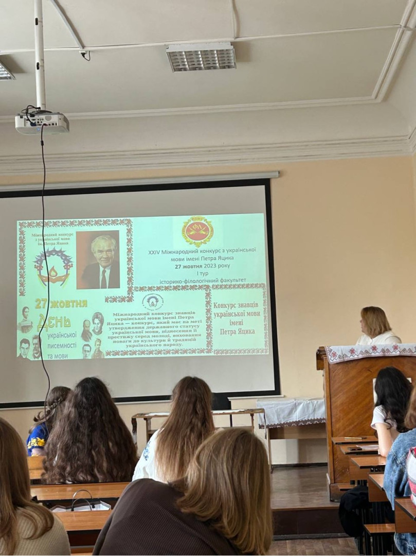 Любімо, вивчаймо, бережімо рідну українську мову! 27 жовтня, у День української писемності та мови, на історико-філологічному факультеті майбутні вчителі української мови і літератури, англійської мови, зарубіжної літератури, історії, музичного мистецтва, психологи відзначили свято та відкриття першого етапу Міжнародного конкурсу знавців української мови імені Петра Яцика.